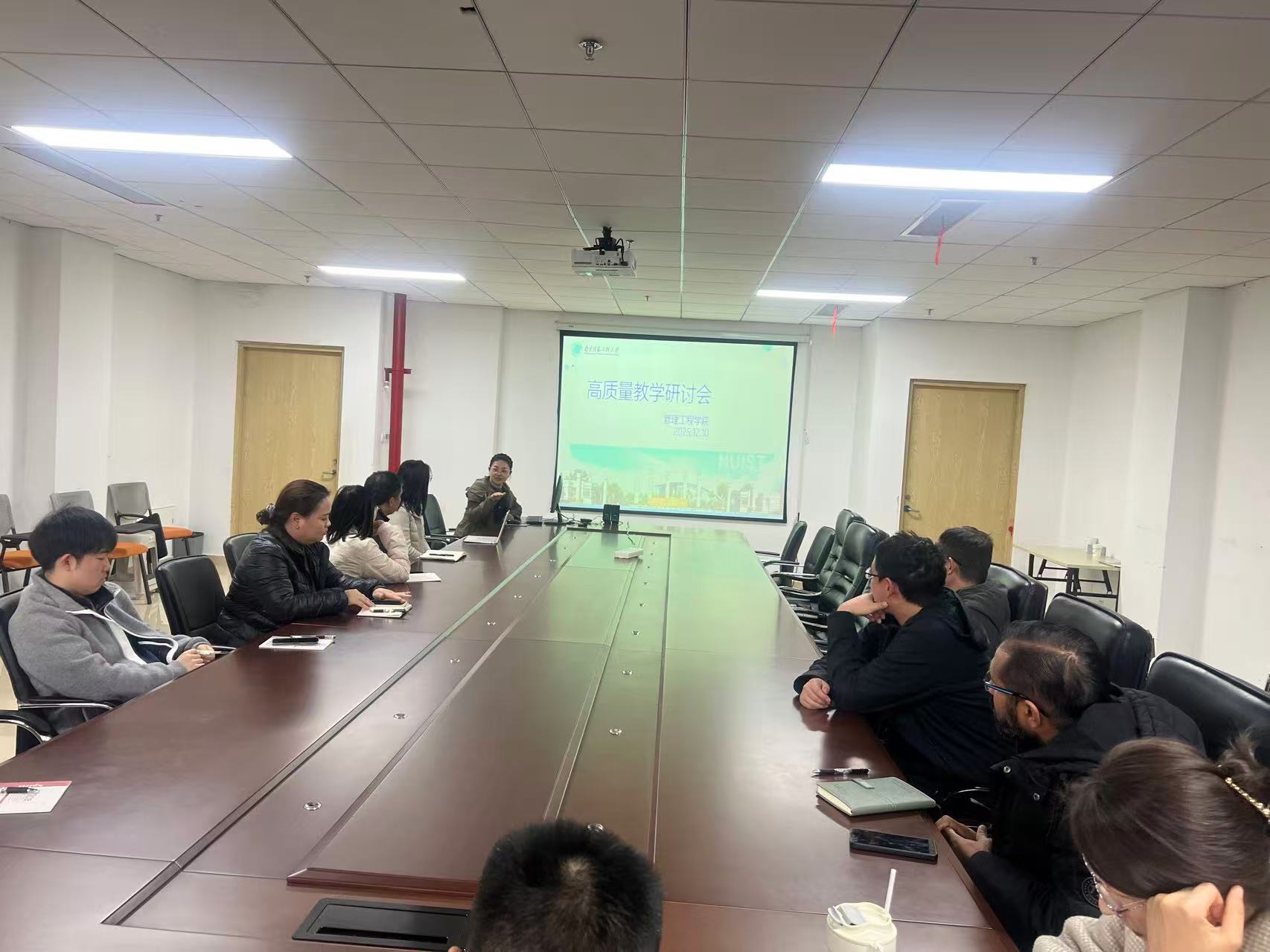 12月10日下午,管理工程学院中外合作办学“数据与决策分析”硕士专业2025-2026学年教学发展研讨会在阅江楼325举行。与会人员包括国际化项目主任潘雪、学院国际化督导李琰、本专业任课教师以及国际化秘书朱莹莹,会议由潘雪主持。